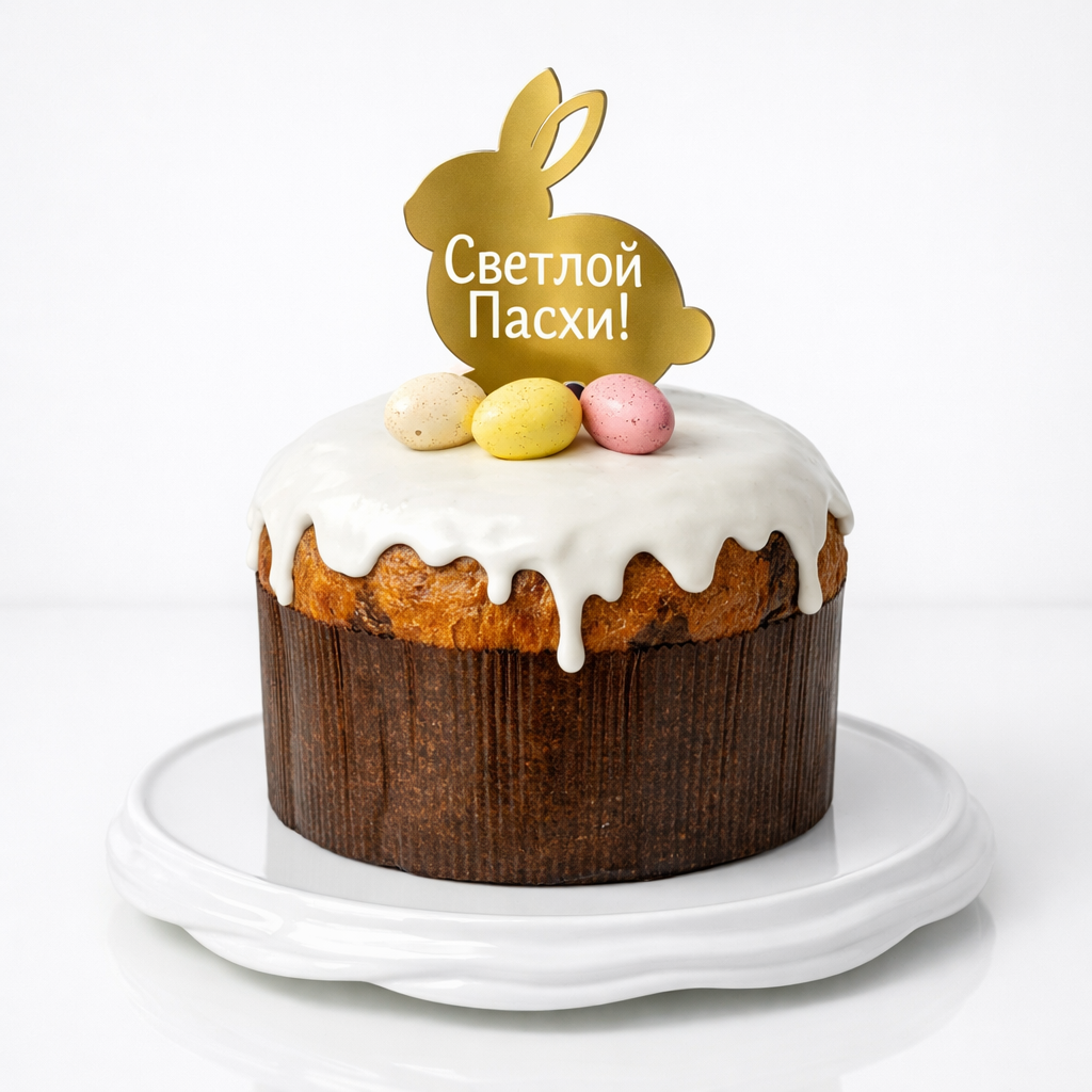 Итальянский панеттоне на пасху (кулич) с белой глазурью и шоколадными яйцами в гнезде № 1028
