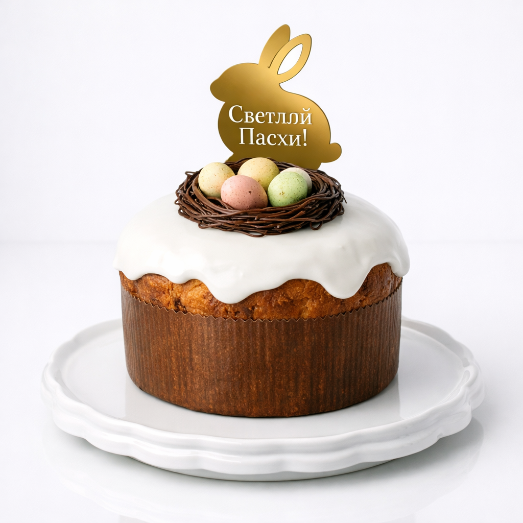 Итальянский панеттоне на пасху (кулич) с белой глазурью и шоколадными яйцами в гнезде Светлой Пасхи № 1029