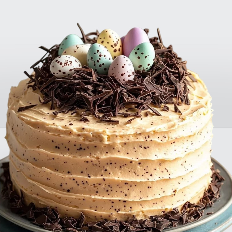 Торт на пасху с яйцами в гнезде из бельгийского шоколада № 1035