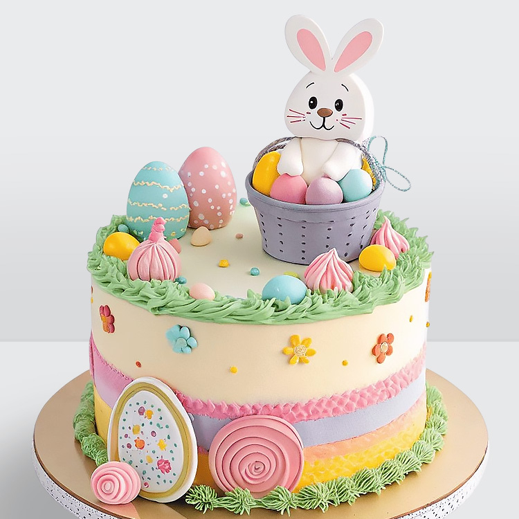 Торт на пасху с зайкой и цветными яйцами № 1036
