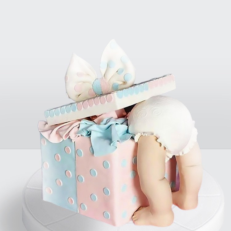 Торт для гендер пати младенец в коробке с бантом № 1067