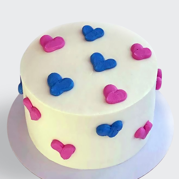Торт для гендер вечеринки с сердечками № 1106