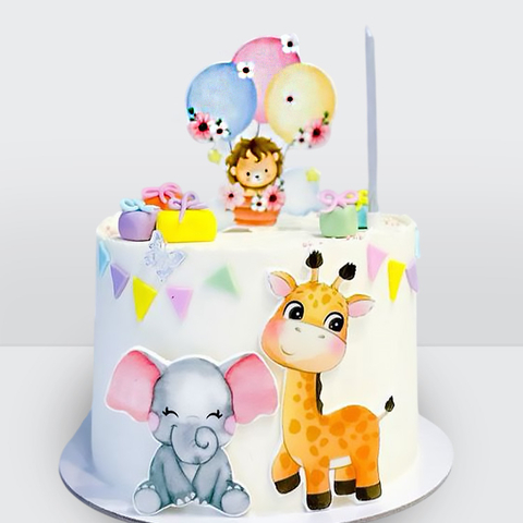 Детский торт со львом, жирафом и слоном № 119