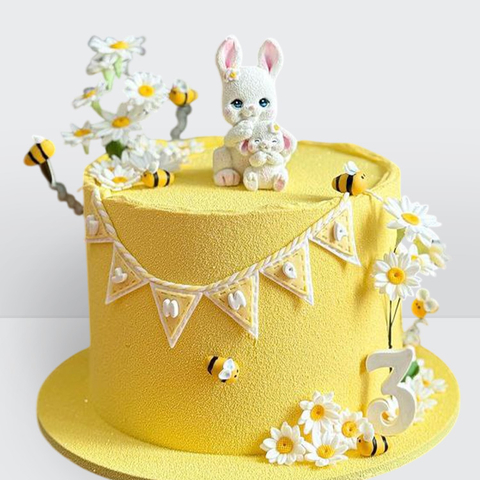 Детский торт с зайкой, пчелами и ромашками желтый № 126