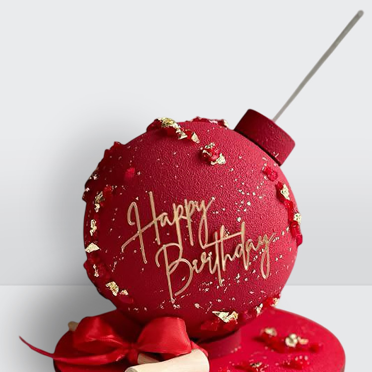 ? Торт бомба с фитилем красный с золотыми блестками на день рождения № 133