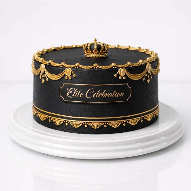 Черный торт с золотой короной № 1423