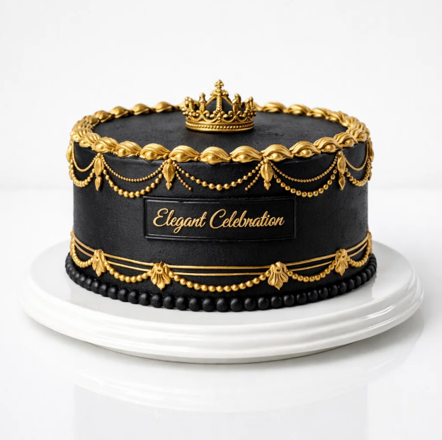 Черный торт с золотой короной № 1428