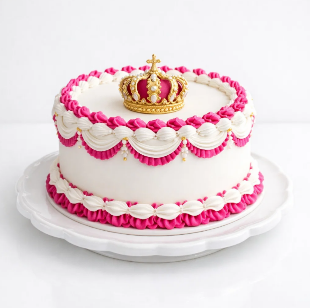 Торт белый в стиле ламбет с короной № 1429