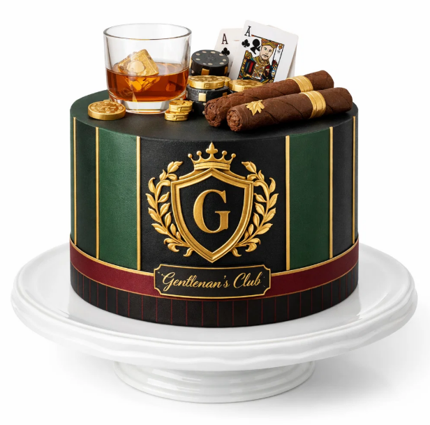 Торт в стиле минимализм для джентельменов с виски и сигарами № 1488