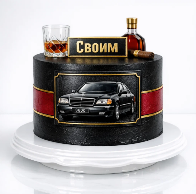 Торт черный с виски сигарой и мердседесем № 1496