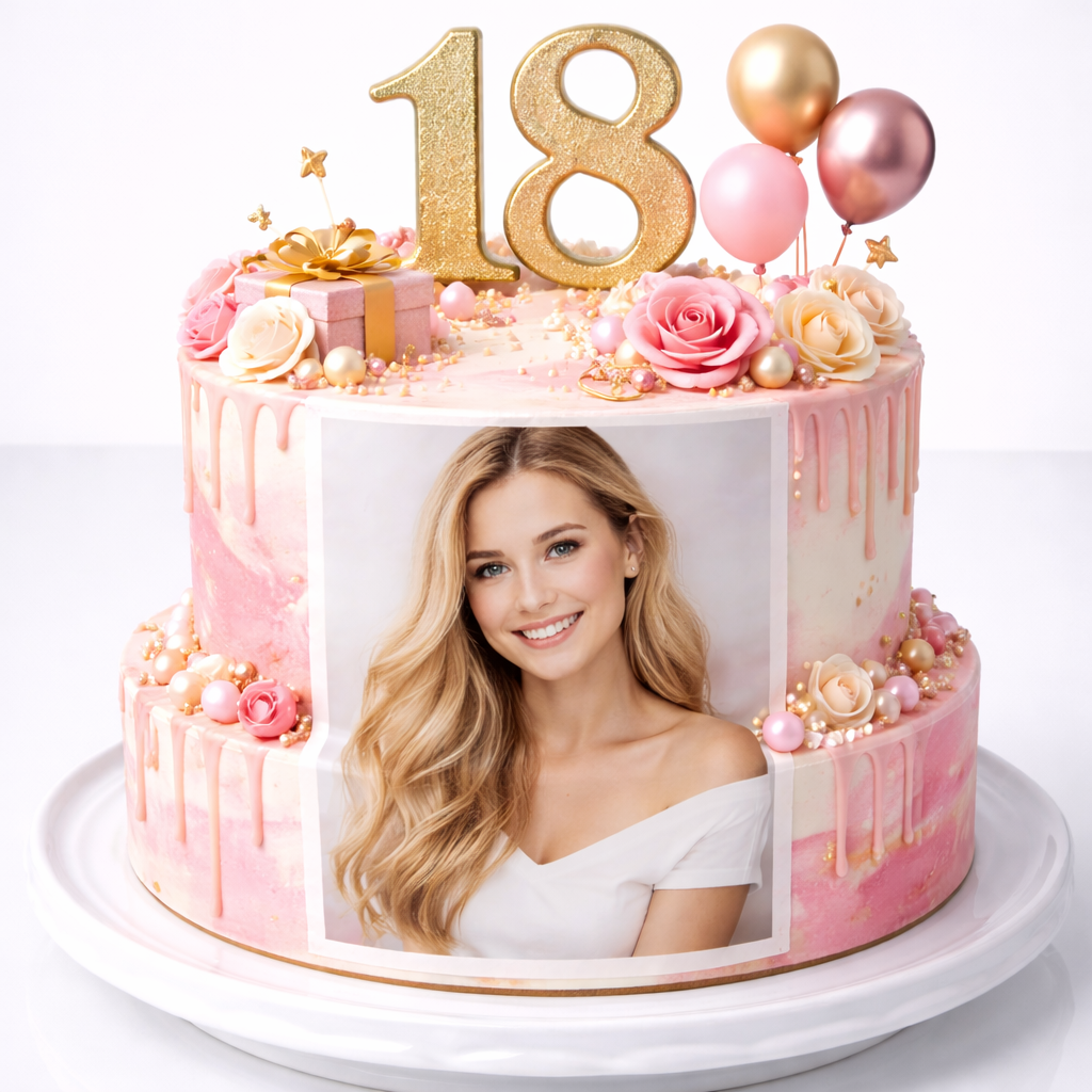 Торт на день рождения для девушки с розами и фотопечатью № 1546