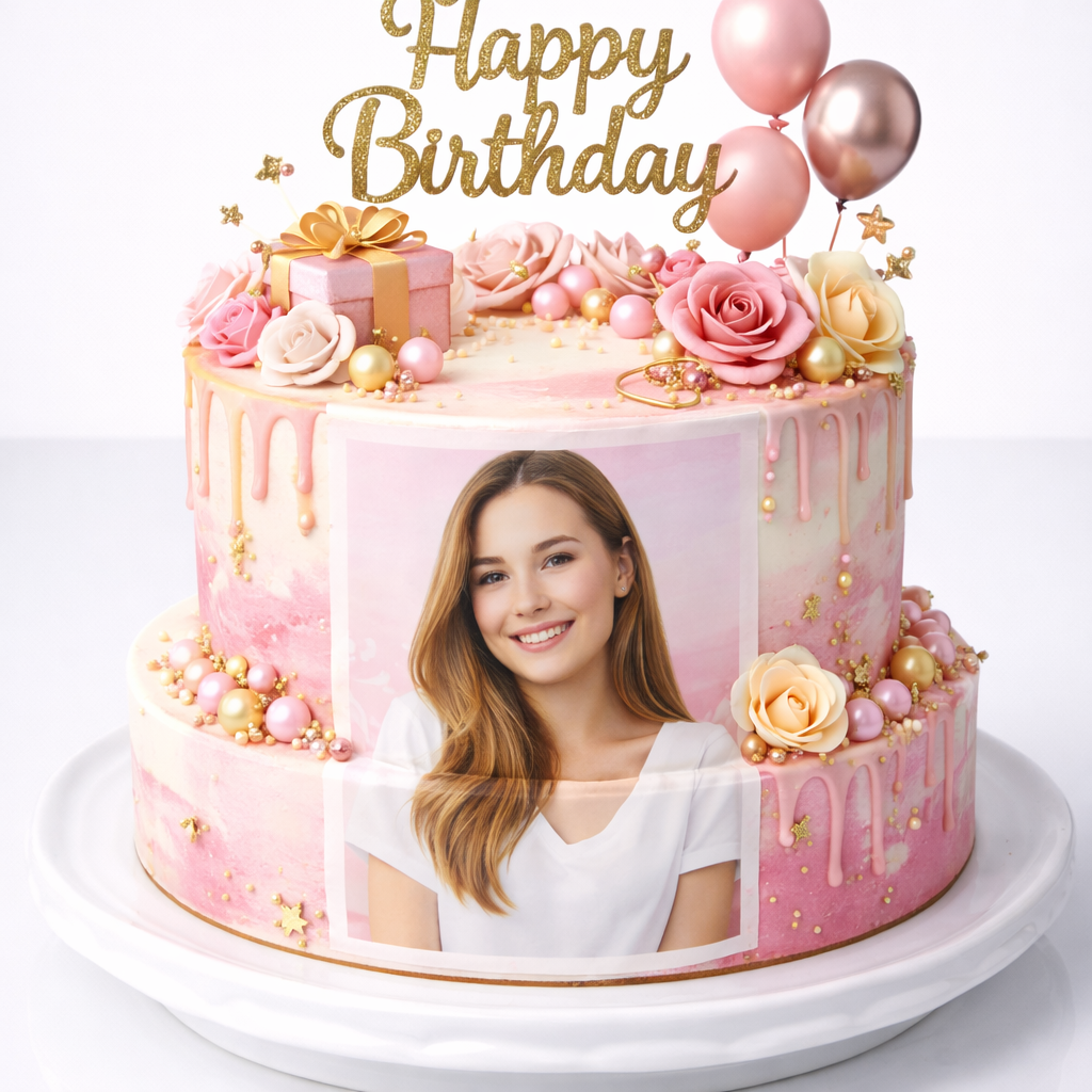 Торт на день рождения для девушки с розами и фотопечатью № 1548