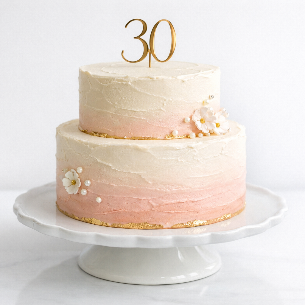 Торт розовый на юбилей 30 лет с цветами № 1600