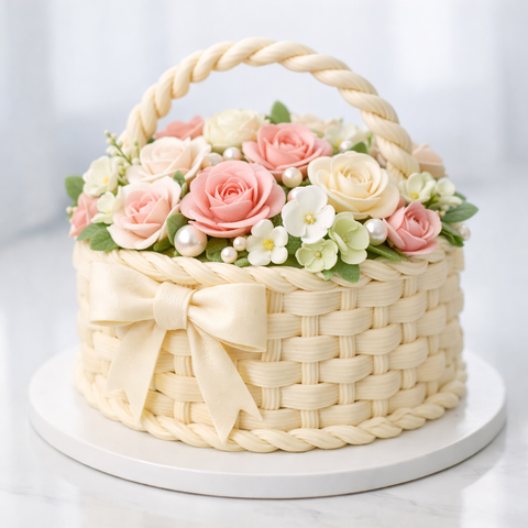 Торт корзина с цветами розами № 1604