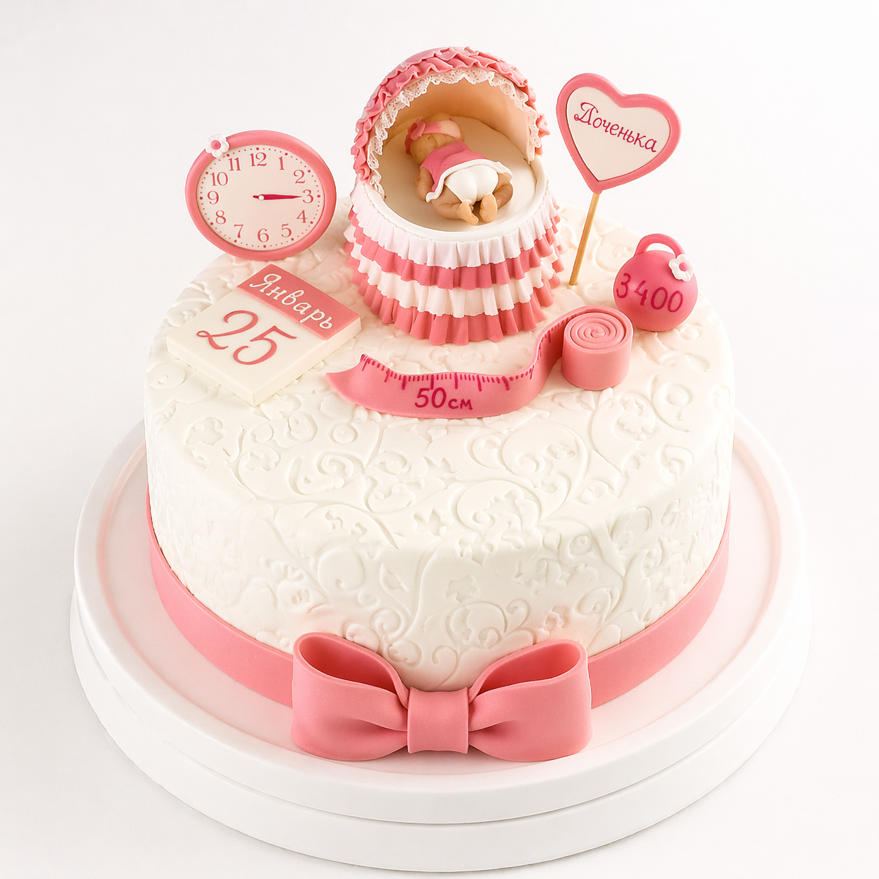 Торт для новорожденной девочки № 1631