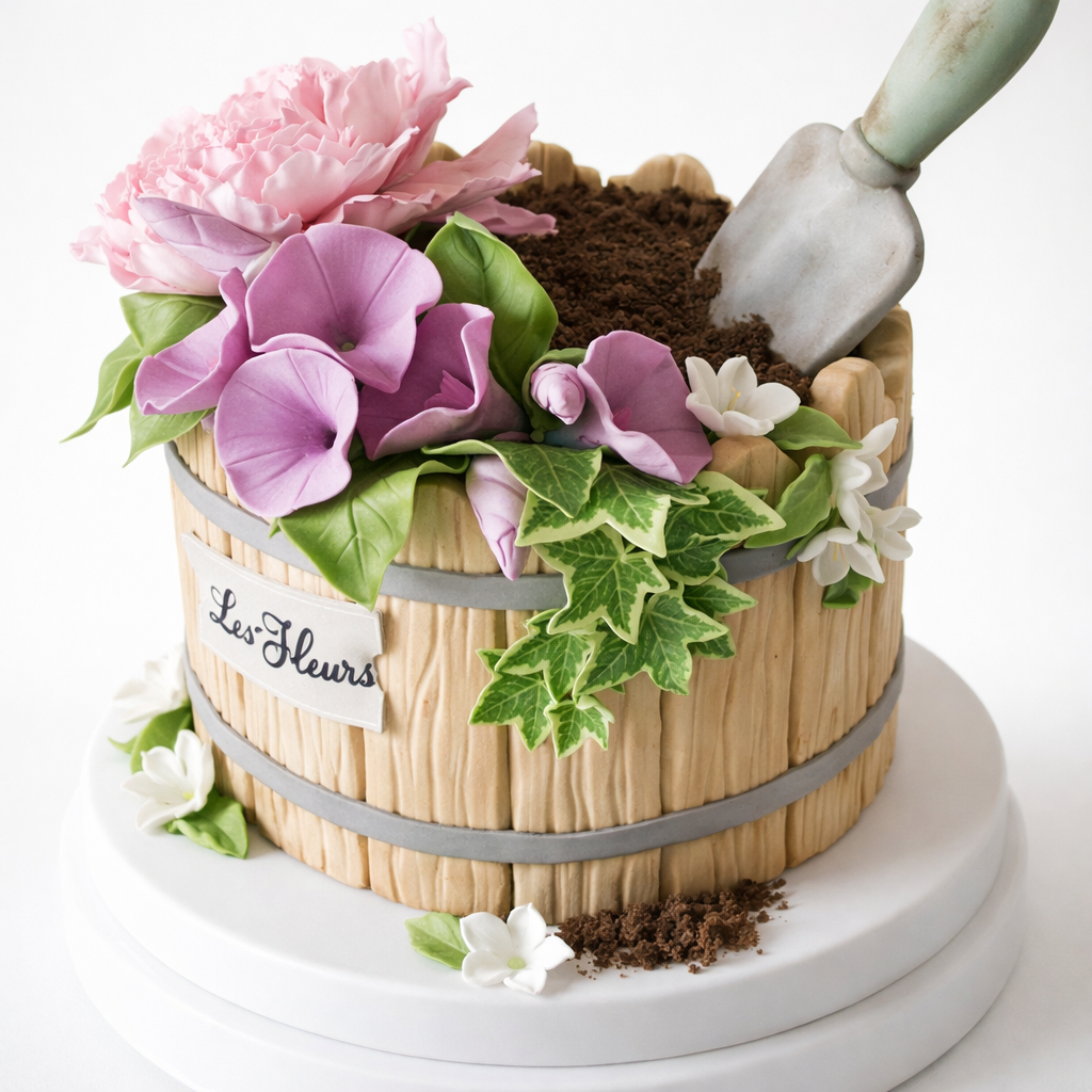 Торт кашпо с цветами № 1688