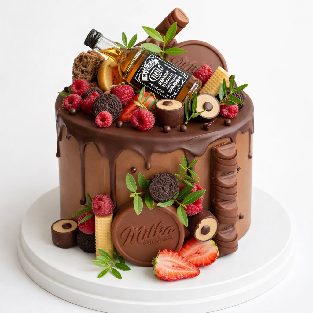 Торт шоколадный с шоколадом Милка, малиной и клубникой № 1692