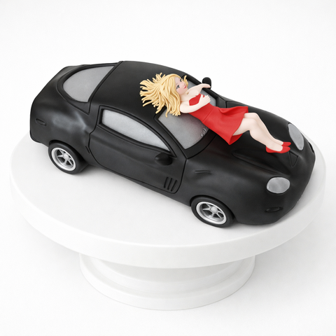 Торт девушка в красном платье на черной машине 3Д № 1695