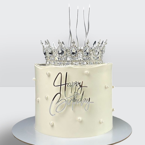 ? Торт ламбет белый с короной, с жемчужинами и фитилем, бенгальским огнем № 175