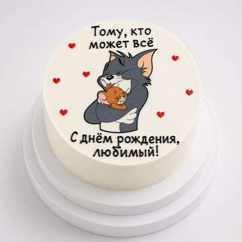Бенто торт с надписью «тому, кто может всё» с Томом и Джерри № 1778