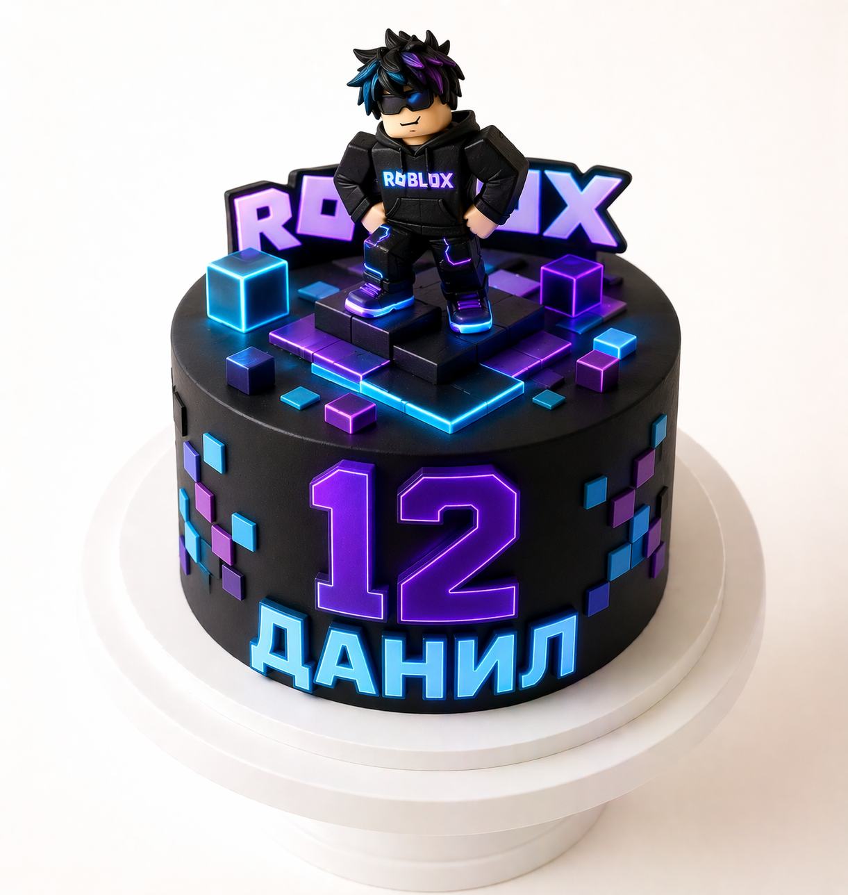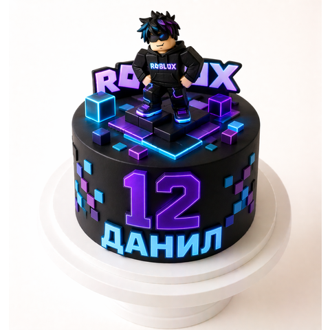 Торт Роблокс неон с фигуркой и цифрой 12 № 1797