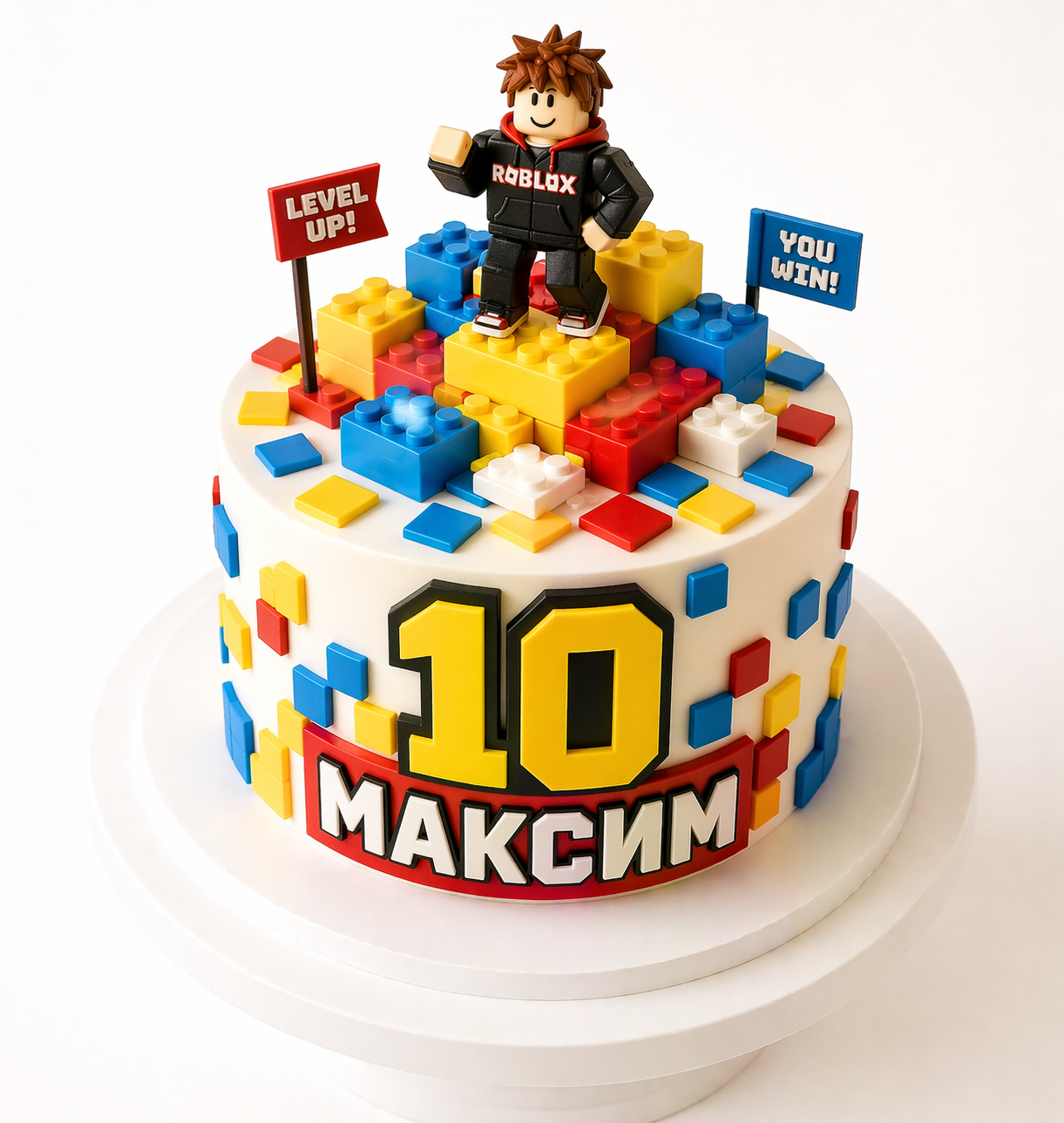 Торт Роблокс с фигуркой и кубами на 10 лет № 1798