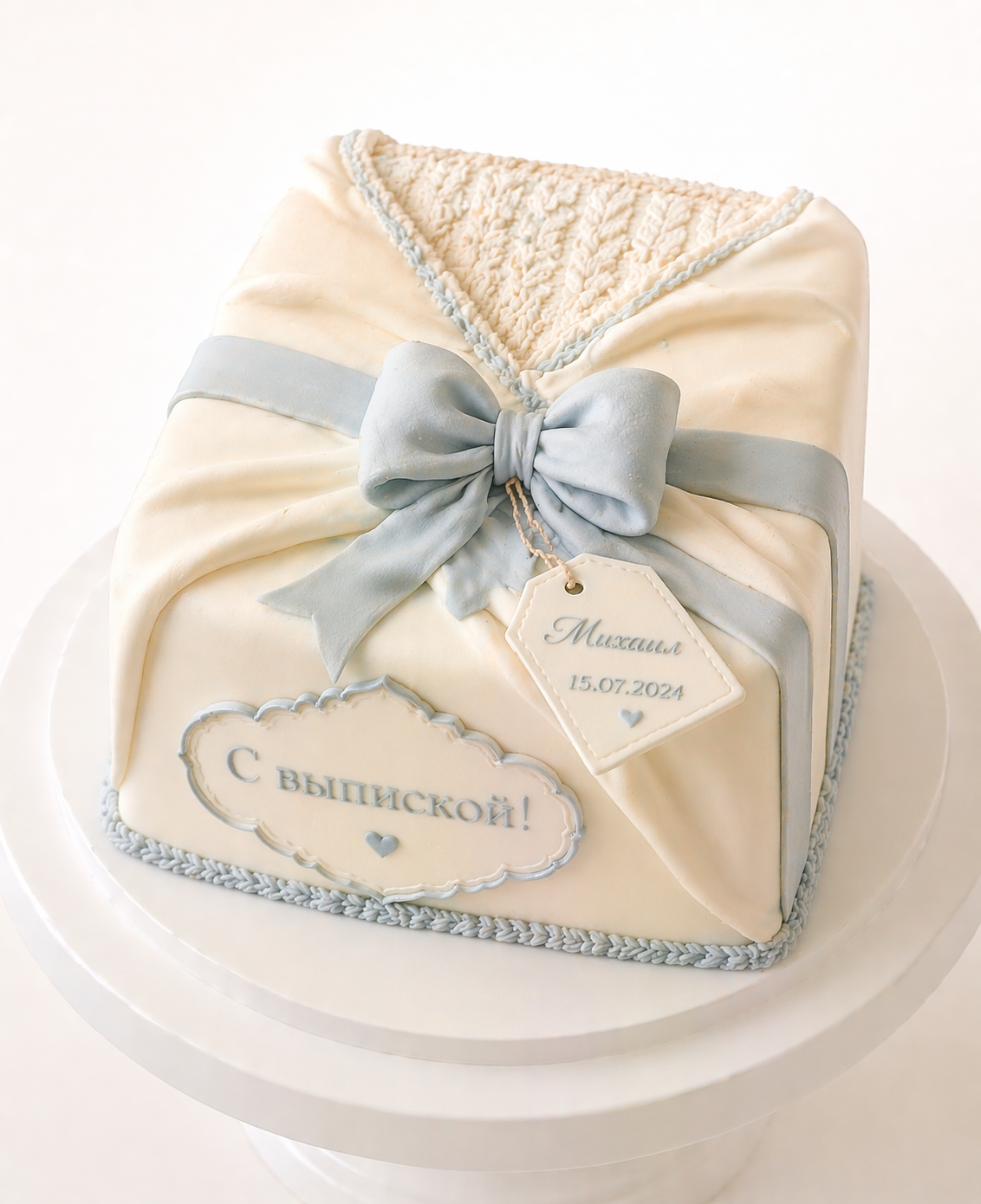 Торт на выписку в виде конверта с бантом № 1812