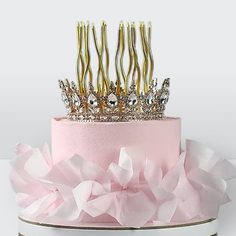 Торт розовый велюровый с золотой короной бахромой со свечами № 182