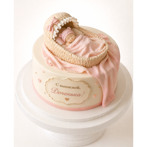 Торт на выписку с младенцем в люльке № 1827