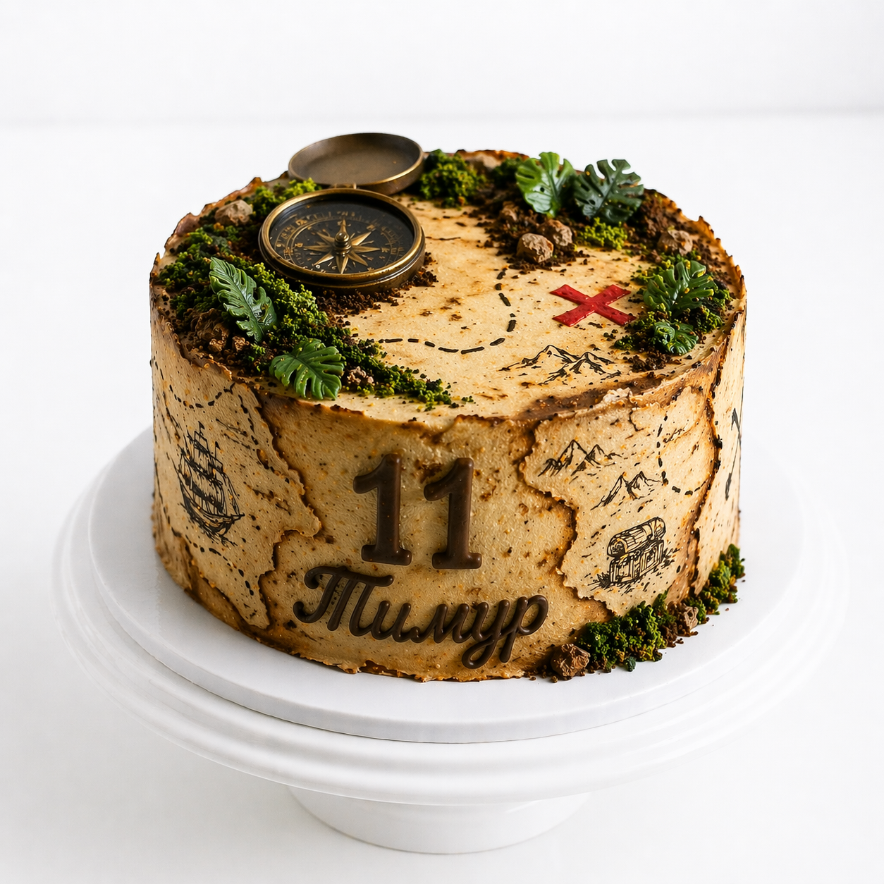 Торт карта приключений на 11 лет с компасом № 1873