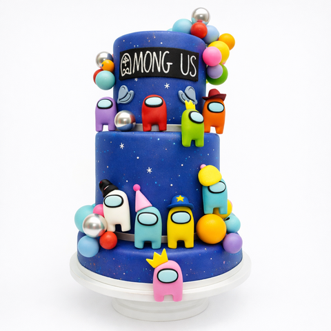 Яркий двухъярусный торт Амонг ас с фигурками № 1878
