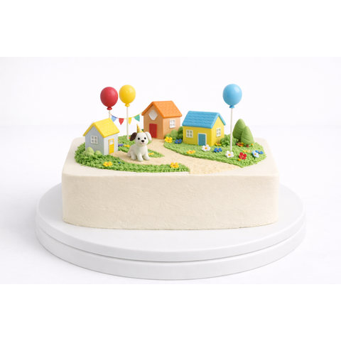 Торт с домиками и щенком № 1886