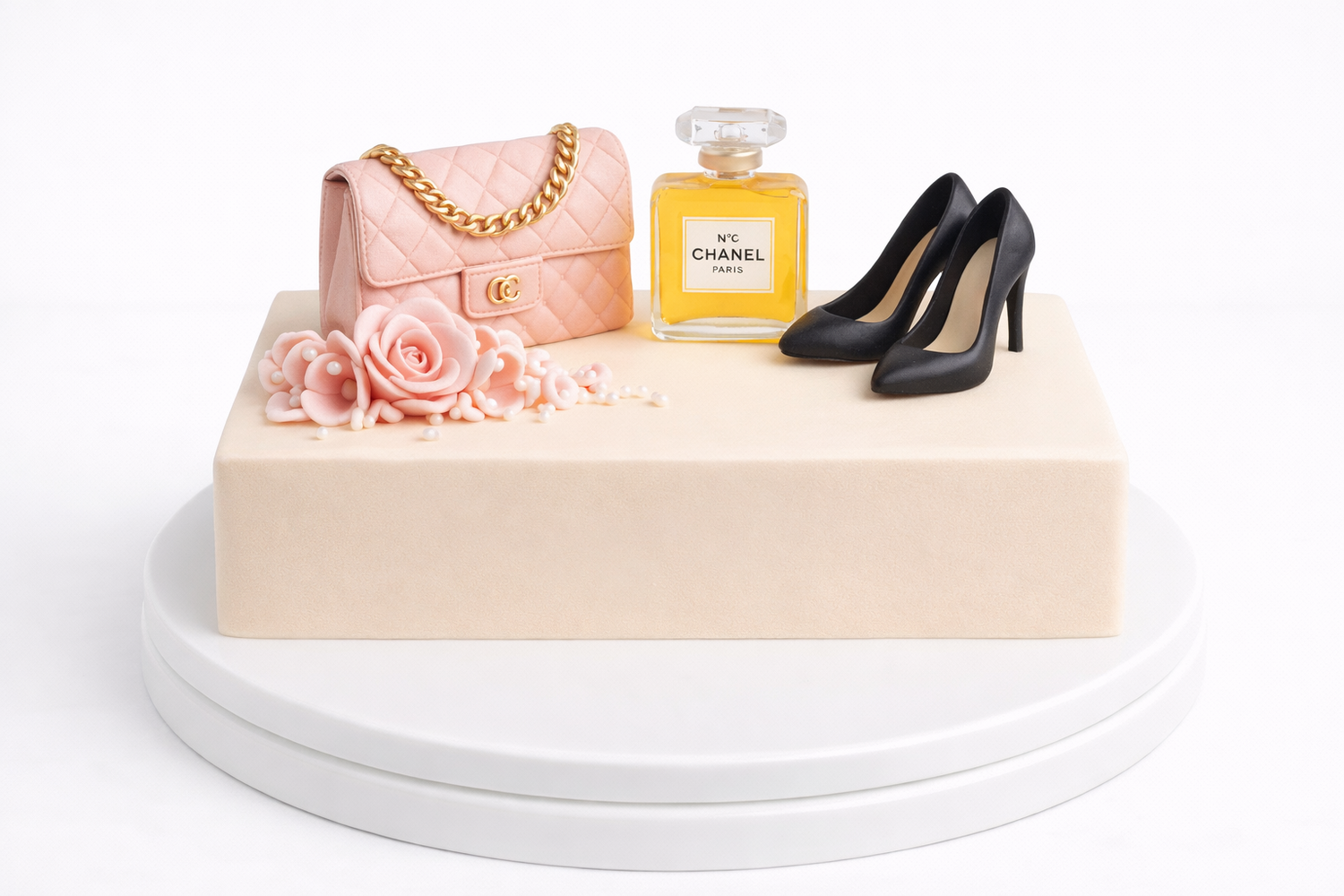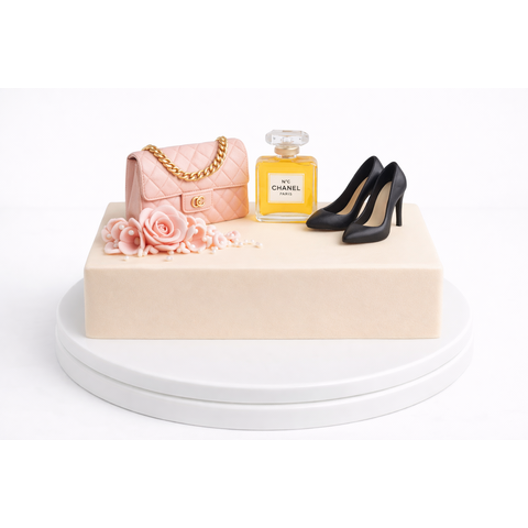 Торт с сумкой, духами шанель и туфлями № 1891