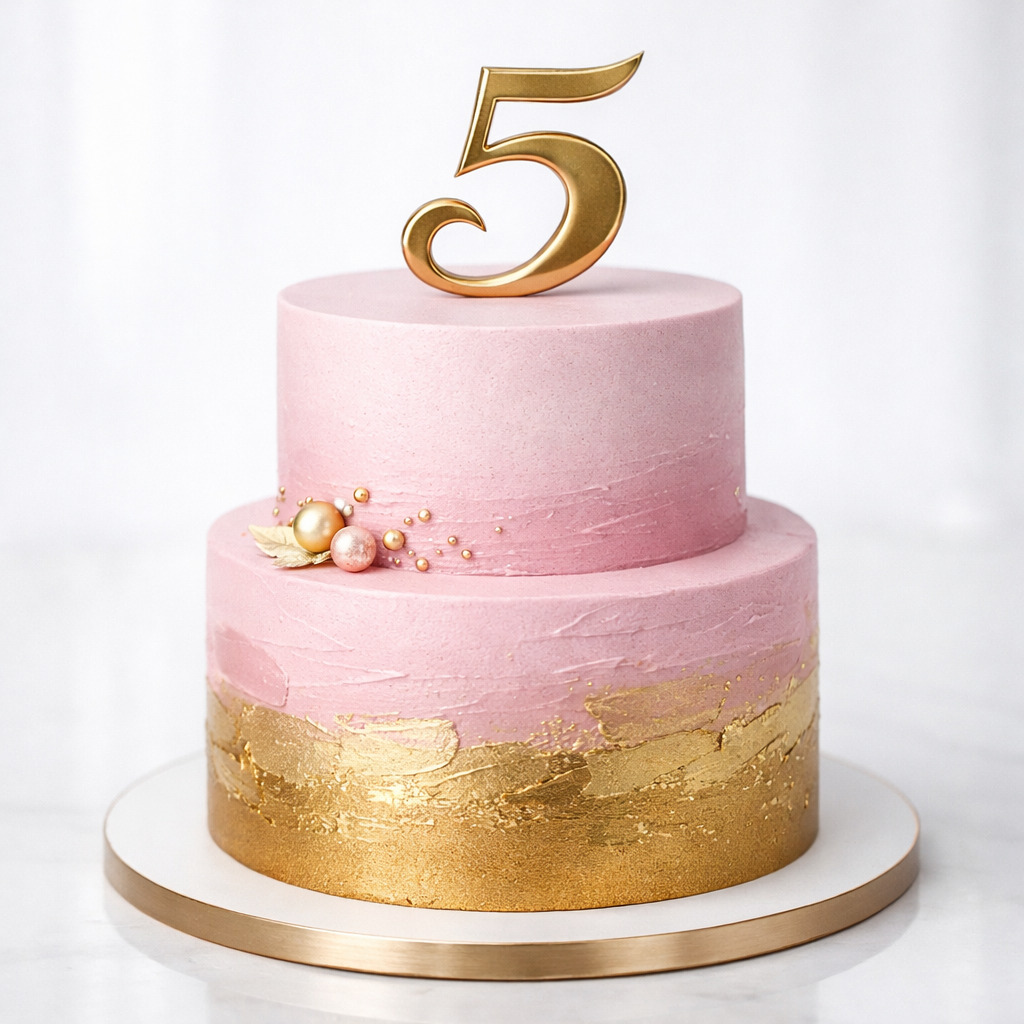 Торт розовый с золотом на 5 лет девочке № 1899