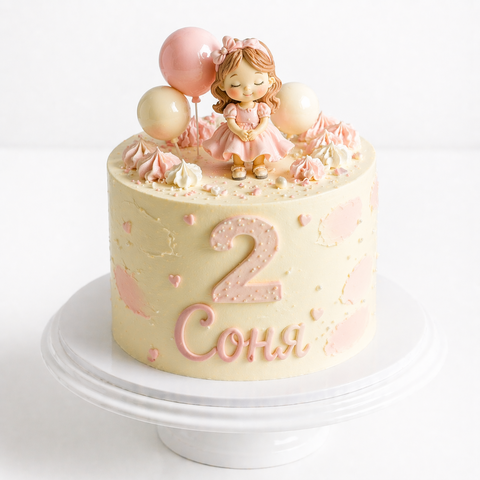 Торт на 2 года с девочкой и шарами № 1908