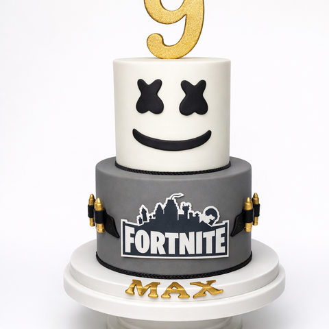 Торт Фортнайт двухъярусный с маской и логотипом № 1929