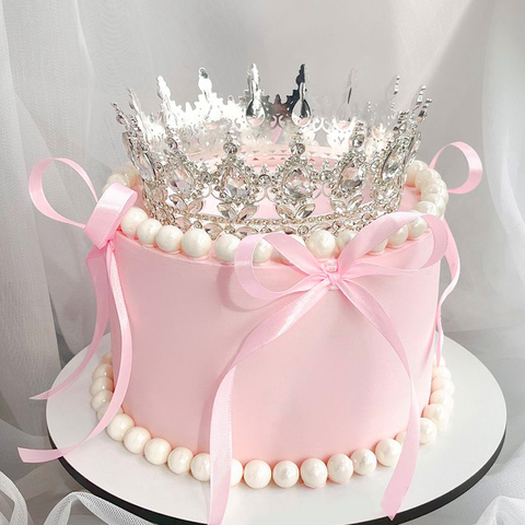 ? Торт розовый с короной, бусинами и розовыми лентами № 194