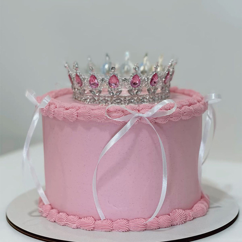 ? Торт ламбет розовый с короной и белыми лентами № 197