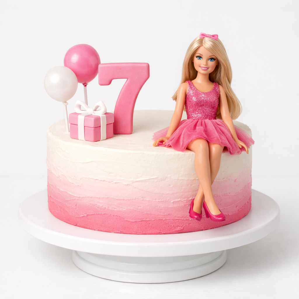 Торт Барби с цифрой 7 и подарком № 1971