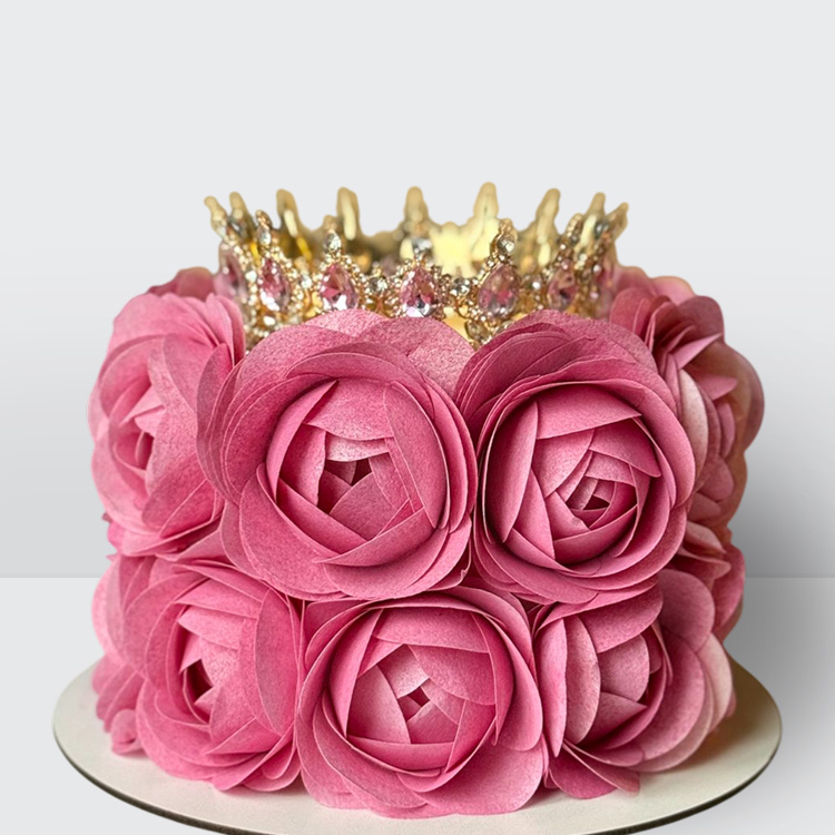 Торт розовый с золотой короной с розовыми розами № 198