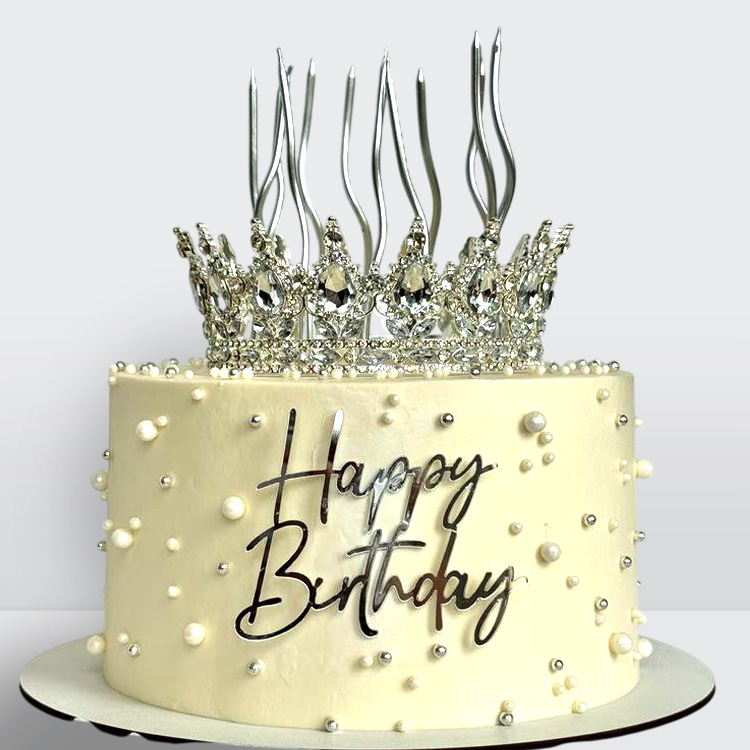? Торт ламбет желтый с короной и бусинами, фитилем огнем № 199