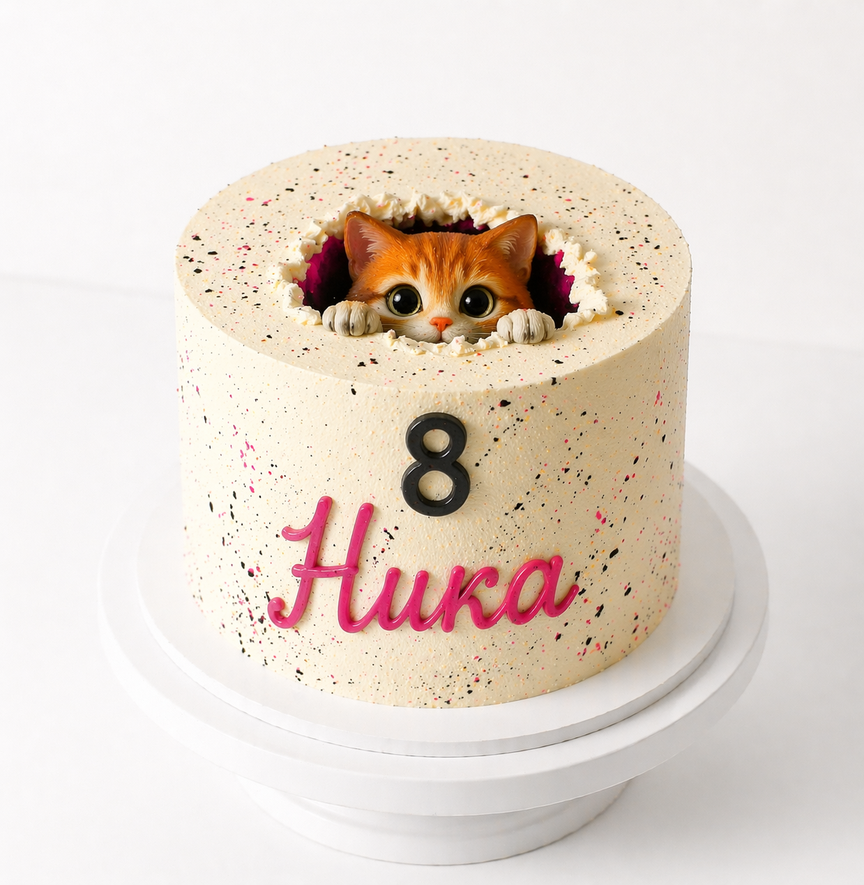Торт с котёнком из отверстия на 8 лет № 1991