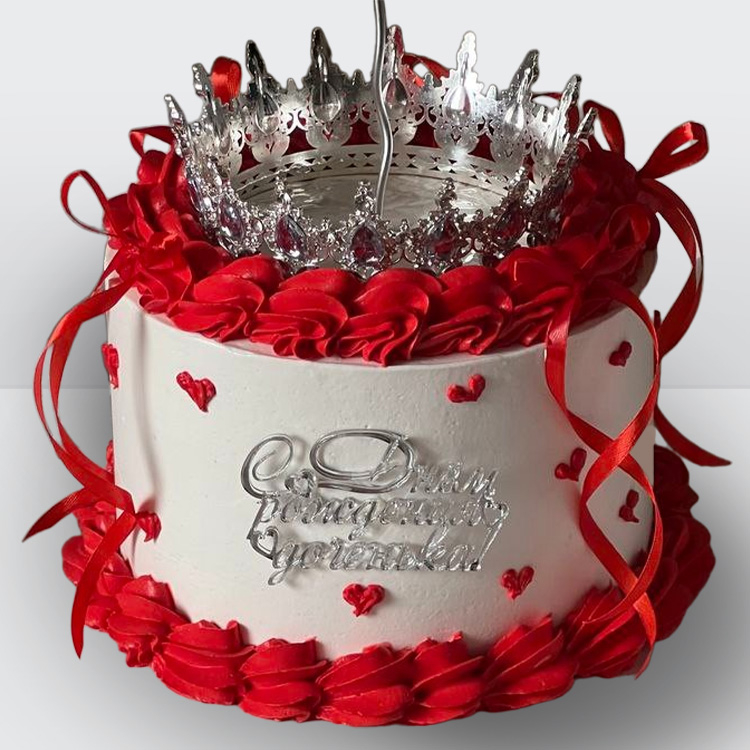 Торт ламбет белый с короной и блестками красными лентами с надписью и огнем № 202