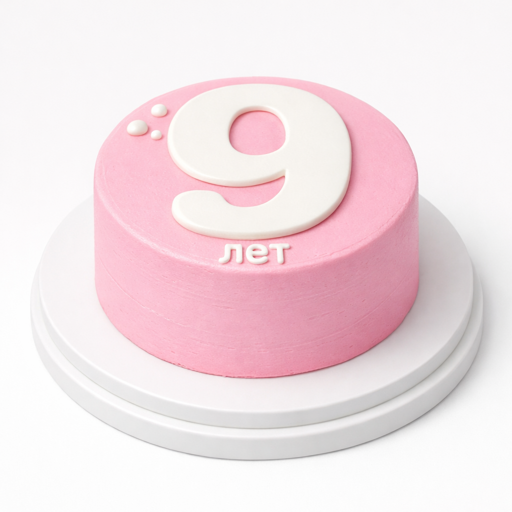 Бенто торт на 9 лет с цифрой в нежно-розовом стиле № 2033