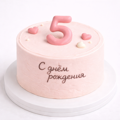 Бенто торт на 5 лет с цифрой и надписью «с днём рождения» с сердечками № 2034
