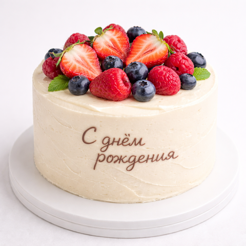 Бенто торт с ягодами и надписью «с днём рождения» № 2048