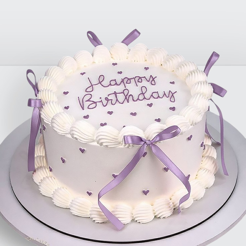 Торт ламбет белый с сиреневыми ленточками и надписью № 208