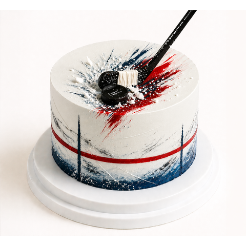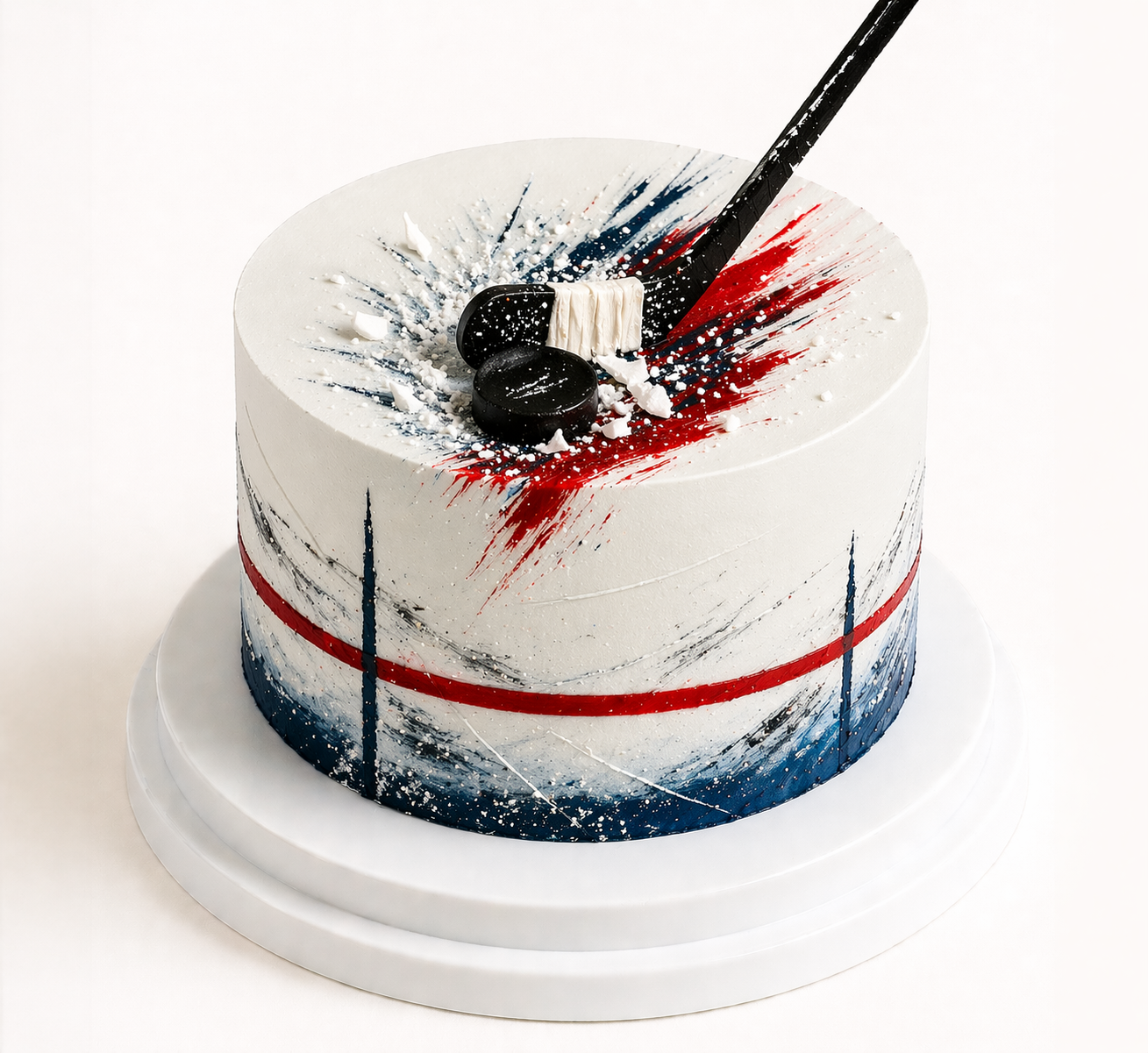 Торт хоккеисту с шайбой и клюшкой № 2103
