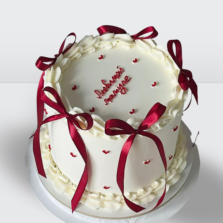 Торт ламбет белый с красными ленточками сердечками и надписью № 212