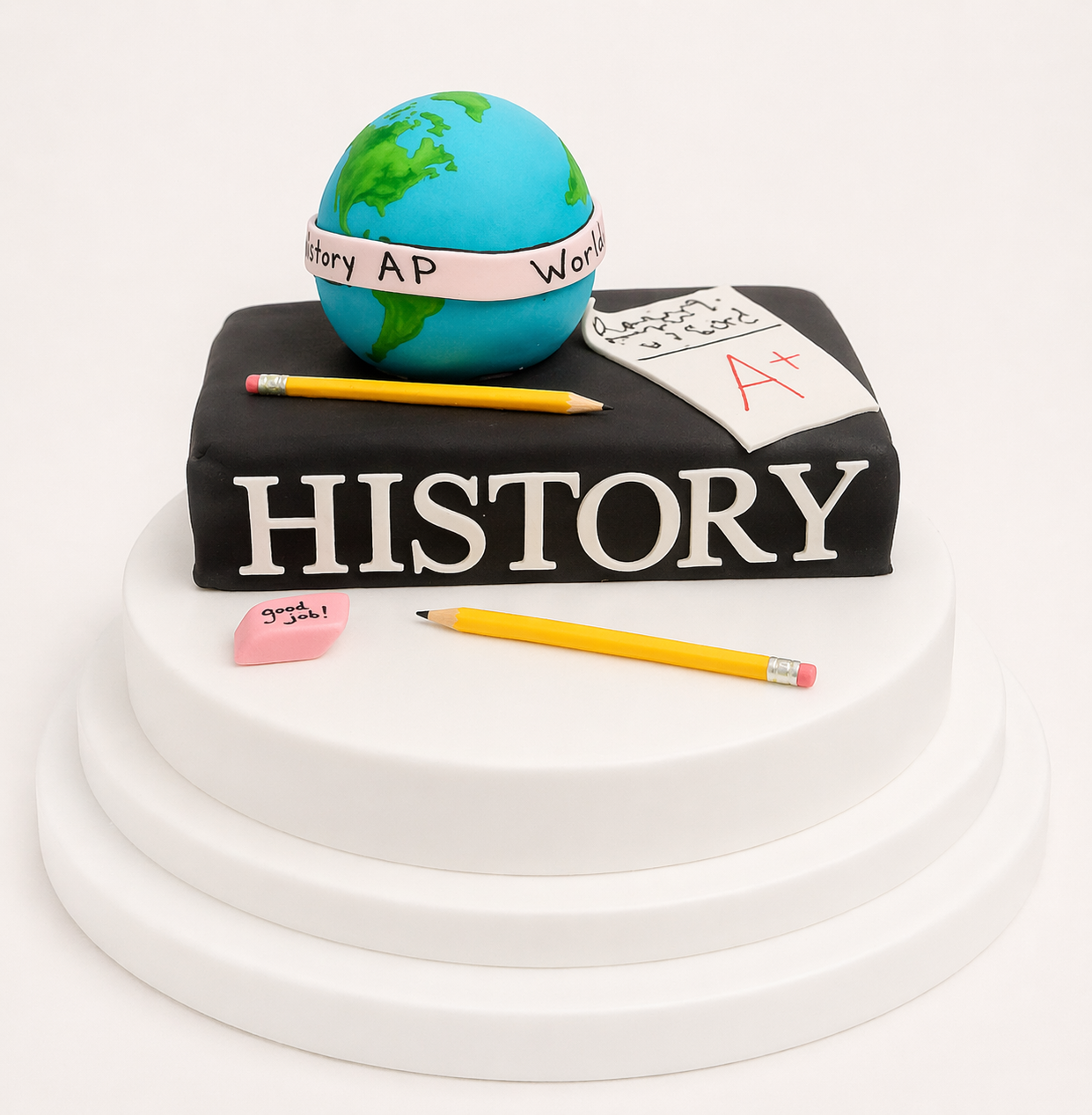 Торт преподавателю истории с глобусом и учебными элементами № 2121